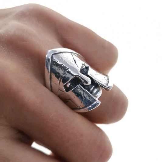 Anillo Rostro y Casco Espartano en Plata de Ley