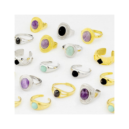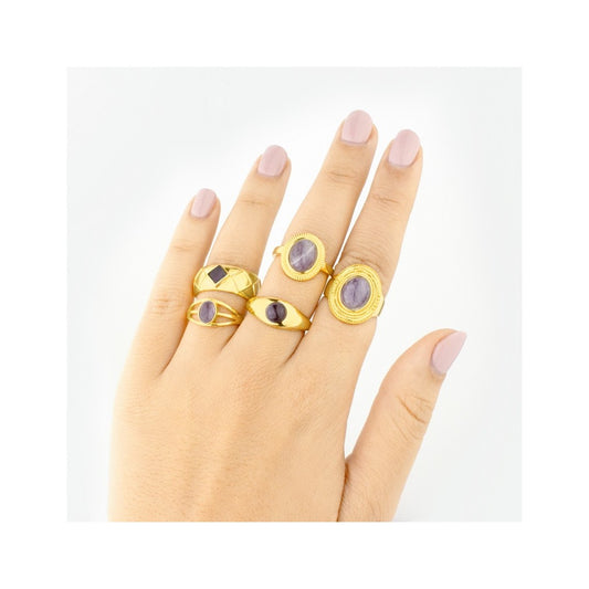 Anillo Dorado Ancho Bolitas Circ Negra