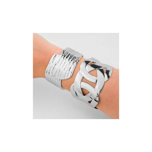 Este tipo de brazalete es ideal para combinar con otras joyas, permitiendo crear looks personalizados.