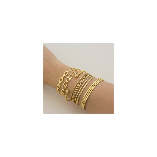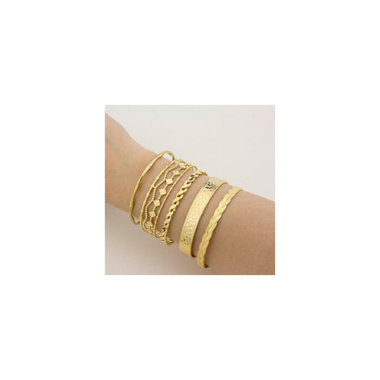Este tipo de brazalete es ideal para combinar con otras joyas, permitiendo crear looks personalizados.