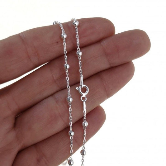 Cadena Bolitas Combinadas 50 cm en Plata de Ley
