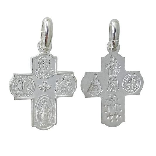 Gargantilla de Plata de Ley con cruz de perlas de color coral
