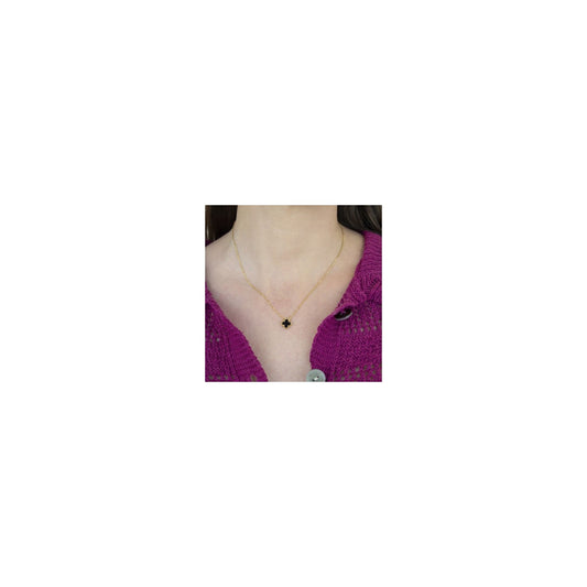 Gargantilla de Plata de Ley chapada en oro con flor en ónix negro