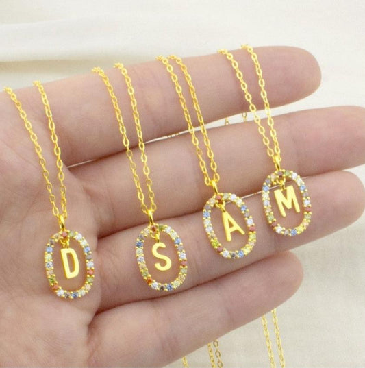 Gargantilla Inicial Circonitas de Plata de Ley Chapada en Oro