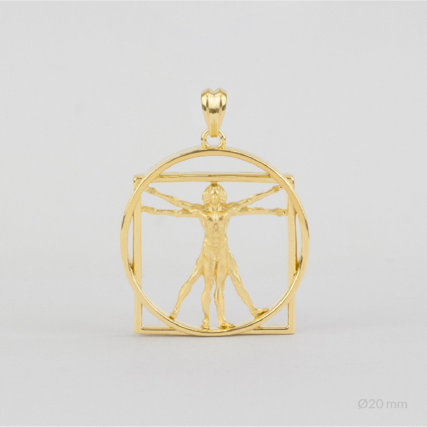 Colgante de Plata de Ley chapado en oro con el Hombre de Vitrubio.
