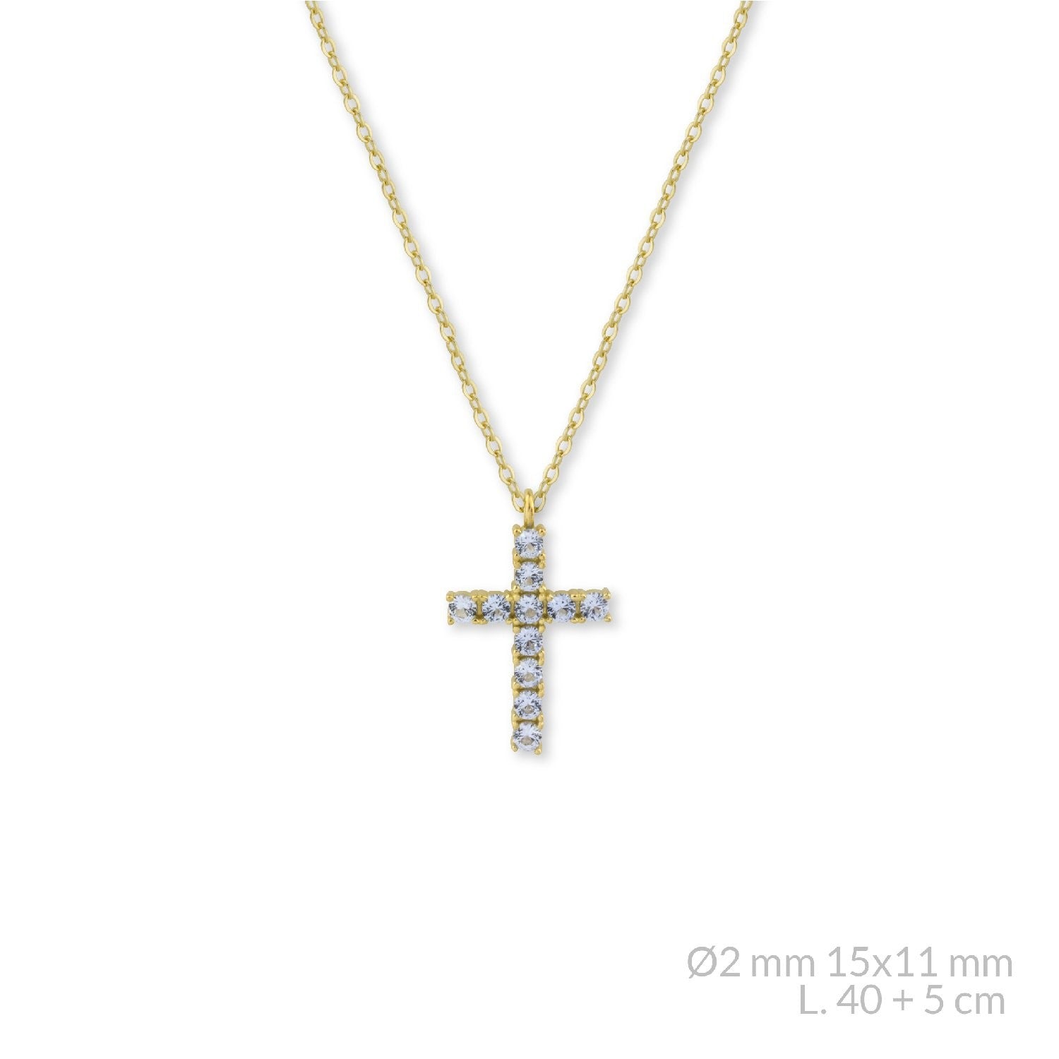 Gargantilla Cruz con Circonitas de Plata de Ley Chapado en Oro.